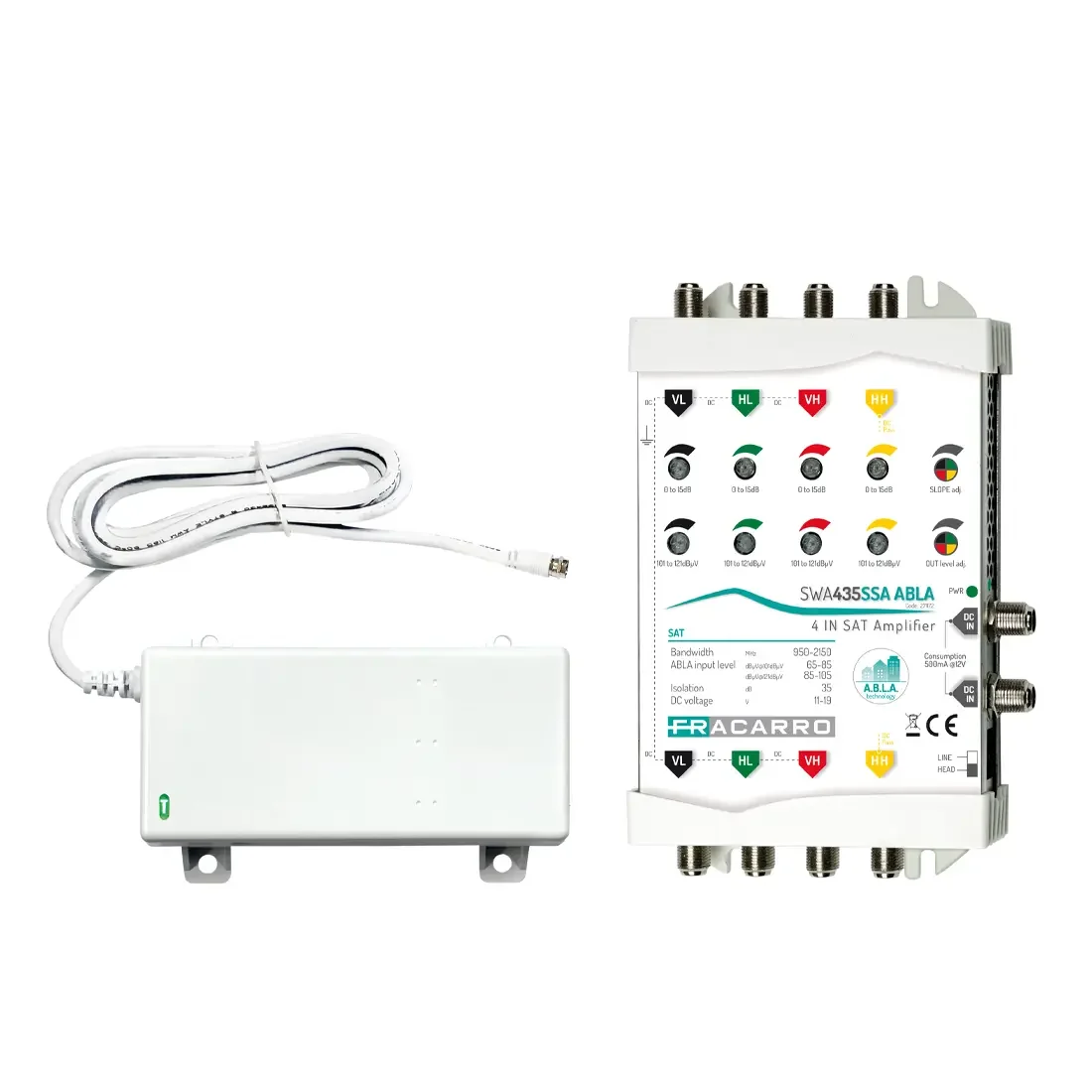 Amplificador principal com 4 entradas de satélite , tecnologia ABLA e ajuste de nível de saída.