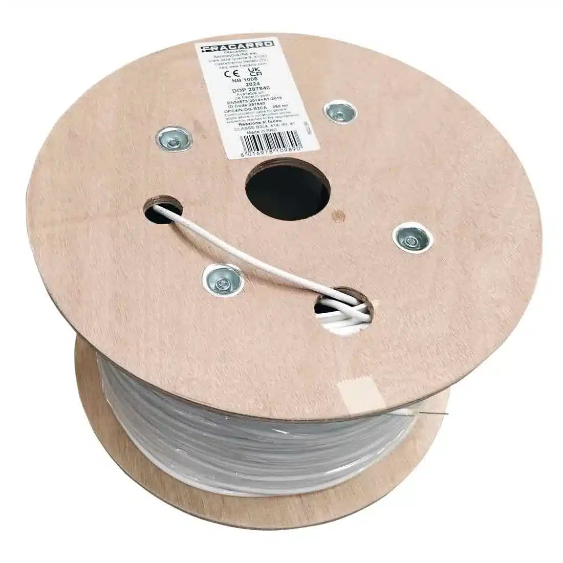 Cabo de fibra óptica monomodo de dupla bainha para uso interno, com 4 fibras 9/125 (G.657 Categoria A). Classificação CPR B2ca, s2, d0, a1.