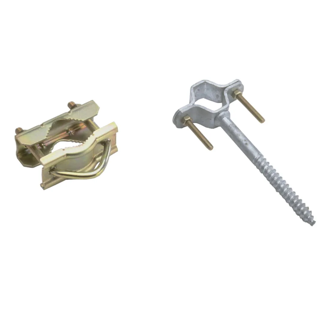 | Características dos grampos | Tubo Ø 40×1,5 mm Altura: 600 mm Placa: 200x200x3 mm Galvanização por imersão a quente |