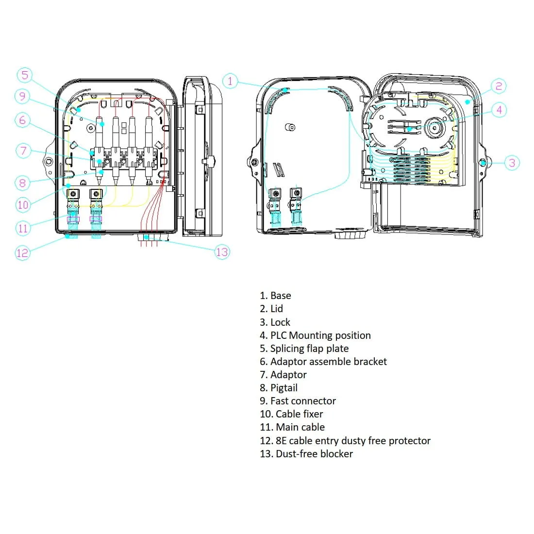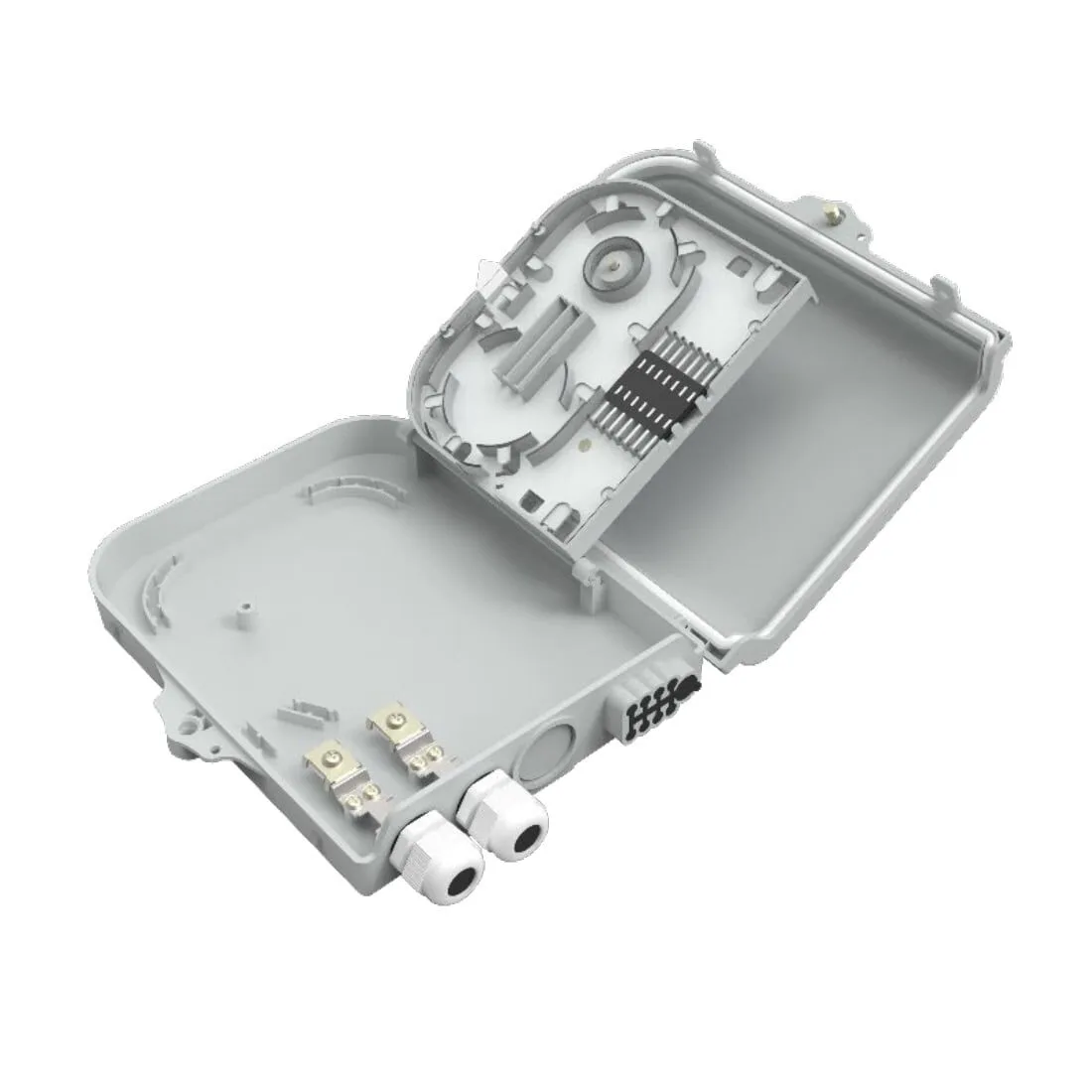 Caixa terminal plástica preparada para 8 conectores SC/APC.